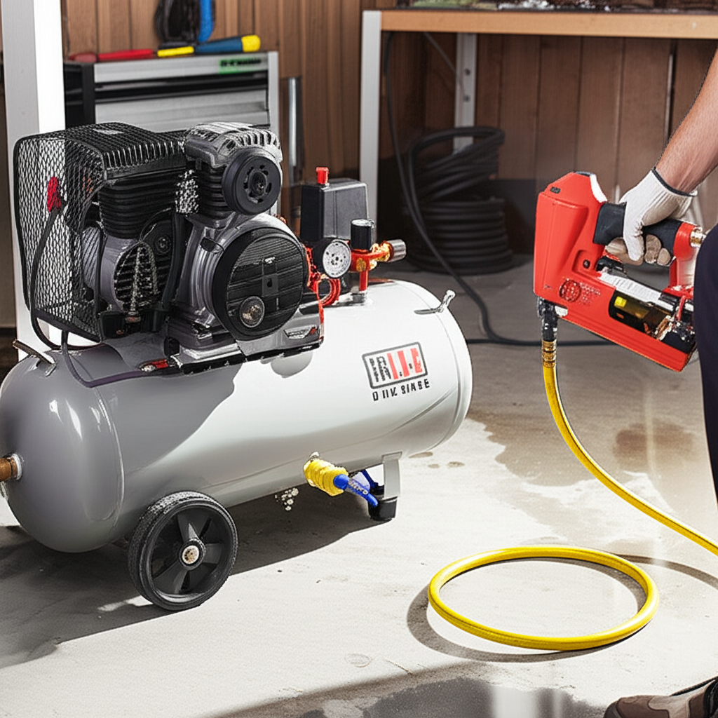 Motor Starts, Air is Compressed: With power flowing, the compressor motor starts up and begins pumping air into the tank. As air enters the tank, the pressure inside gradually increases.
